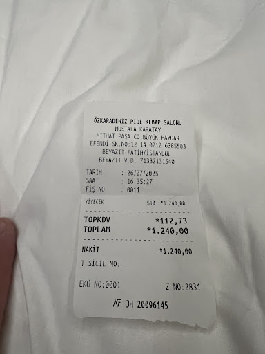 Avoid this place, a very bad experience. I went at 4:30 PM, I had lunch there, the first thing I asked if they sell beer and the gentleman there said yes, but there was no alcohol on the menu because it is close to the mosque. And I asked if they had eggplant salad and it was not at all what was supposed to be and I paid the money without eating. In the end when I asked for the bill I was brought a paper that said 1250 Turkish liras and I told him to give me a tax receipt and then I was brought a strange receipt that I can't see because it was 2 beers that said a beer was 300 Turkish liras (canned beer not bottled), a pizza, a cappy juice and an eggplant salad and some bread. The gentleman's English was very limited as he almost didn't understand what we wanted to order. And on the receipt it said 1240 Turkish liras and not like the first time on the paper 1250. Avoid this place because it is a big scam, they charge you much more than on an island that we visited and other places in the center which were much better conditions than 3 tables thrown on the street. You come to a country that cares a lot about religion but it seems that for some extra money they were able to forget about religion and not be honest. It is my fault that I chose this place but I didn't know what...
