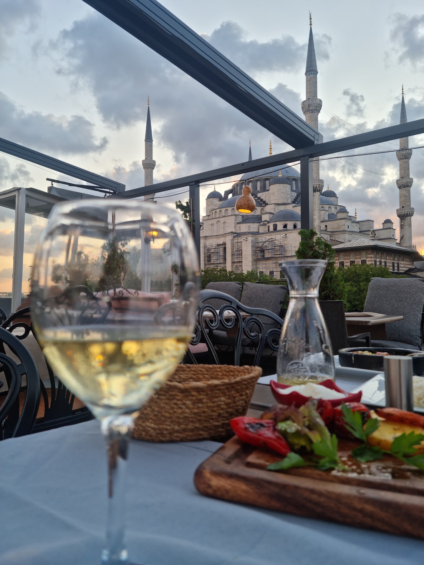 First issue: The owners made it very unclear that the terrace, the on main selling point for the restaurant, was closed. we did not find out until we were at the restaurant wwe sat inside on the floor below.The view of the Blue Mosque from inside through an open terrace door was ok but would have been much better from several rooftop terraces in the area. When I asked then why they did mention this in response to my reservation request (i noted that the terrace was the main selling point)...they just shrugged. I should have left right then and there, but my wife was tired from walking around the city, so we decided to stay.