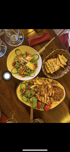 We started the meal with a hummus and tzitki appetiser and tried some delicious stuffed vine leaves, the salad with grilled halloumi was also well-portioned and filling.