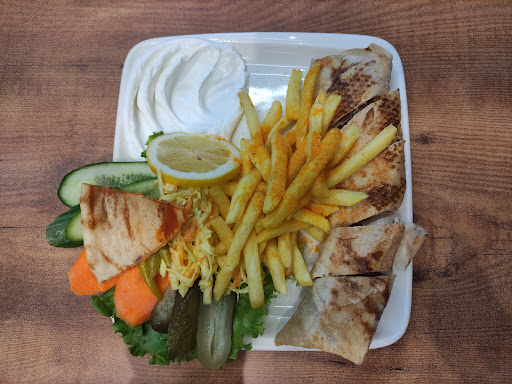 We were here two times, the first time we got shawarma and fries. The shawarma was delicious and the fries were a bit soggy because of the steam that was in the box. The second time we got shawarma, crispy chicken menu and sandwich, cheese börek, fries and kibbeh. The shawarma was delicious like the last time, the crispy chicken menu was also very tasty but the yellow sauce you get with it isn't, it should be replaced with creme toum, the sandwich wasn't good cause of the yellow sauce (should also be replaced with creme toum) and missing pickles, the cheese börek came in 6 pieces that are pretty big and tasty, the fries were better than the first time because they were fresh so they weren't soggy but the spices that are on it aren't so good and the kibbeh was pretty big and tasted good.