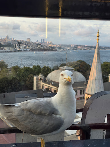 I made a reservation for my Mother and I to have dinner on the rooftop. The restaurant is very responsive via Whatsapp message, which was a surprise! Everyone inside also spoke English, which made it very easy for me to communicate with them. It was a pleasant and inviting feeling from the moment we were greeted, downstairs. You're walked into the hotel and guided to the elevator with a smile and high energy. The elevator doors open and you've arrived. If you're with people who can't handle stairs, this level of the restaurant is beautiful and also has the view of the bosphorus. If you can handle some stairs, you go up to the rooftop where once again your welcomed with smiles and positive energy, and an incredible view of the sea and sunset. We were blessed to be there on a day following a heat wave. The wind was blowing beautifully and the ceilings were open, letting in all that fresh sea air. The waiters were always ready and attentive. What I liked the most was watching them laugh together as they worked. They made a great team. They were open to substitutions without hesitation. I didn't have to ask for something more than once. The food was delicious, tender, and fresh. The team then spoiled us with some tea and baklava. Thank you for making our night pleasant and memorable! I'd definitely come back again if I find...