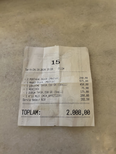 💸 The bill – for a few dishes, some simple drinks and a salad, the total was over 5,200₺, with a 10% “service charge” added automatically.