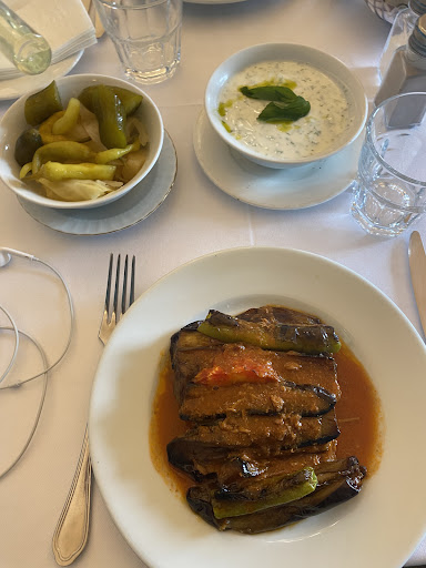 I ordered tzatziki and the lamb with eggplant. Main dishes are around 300 lira and starters around 80 lira. Obviously not expensive by American standards but definitely pricey for Turkey. What was odd to me was that all of my food came out at the same time about 3 minutes after I ordered it. Obviously the tzatziki I expected would have been pre-made but I was a bit surprised that the lamb/eggplant didn't take longer to prepare given the caliber of the restaurant. Nonetheless it was delicious and I was given a massive (too big) bread basket to soak up the juices.