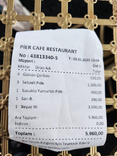 Now, let's talk about the food. The menu at Pier Cafe and Restaurant was a delightful blend of both local and international cuisine. Each dish was beautifully presented and bursting with flavors. It was evident that the chefs paid meticulous attention to detail, using fresh and high-quality ingredients. Whether it was a traditional Turkish dish or a creative fusion creation, every bite was a treat for the taste buds.