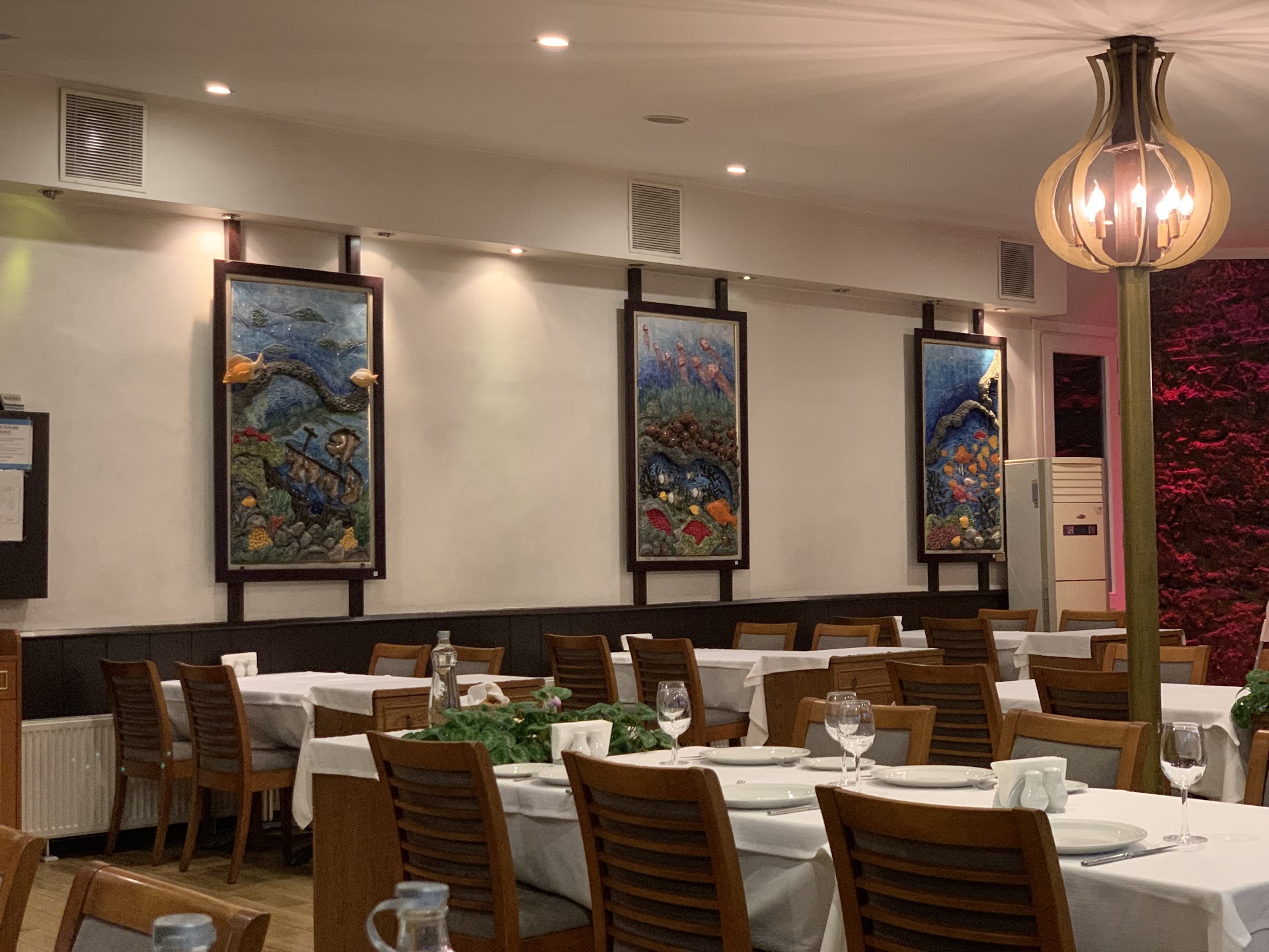 Read moreWhen we arrived, we got served with some bread, olive oil with parsley and olives, but waited a long time to get the drinks. Luckily they served us with a bottle of water (without asking and which I assume was added to the bill considering the final price). We waited even longer for the food, about 45-50mins, but weren’t too concerned about that since we thought it was a good sign. Sea bream was pretty nicely filleted bar 3 smaller bones, but didn’t have too much of a taste, and was served with a bit of mash, one broccoli and sliced onions. Lamb chops were deliciously cooked to the right temperature, but were served with french fries and onions. I was shocked when I saw such restaurant serving that as a side. Of course, this isn’t mentioned anywhere on the menu. We got served with hot napkins, and complimentary semolina halva and tea on the house. The waiters were professional in a serving manner but were tending to those who they thought would spend more, so it made it uncomfortable. But when we were handed the bill, we were shocked by the price - with the tip it was 3000TL per person, so you be the judge of it. So, the highlight of this fish restaurant was lamb and the beautiful dessert and tea, but the rest would not make me recommend it. It seems too posh and expensive for something that isn’t...
