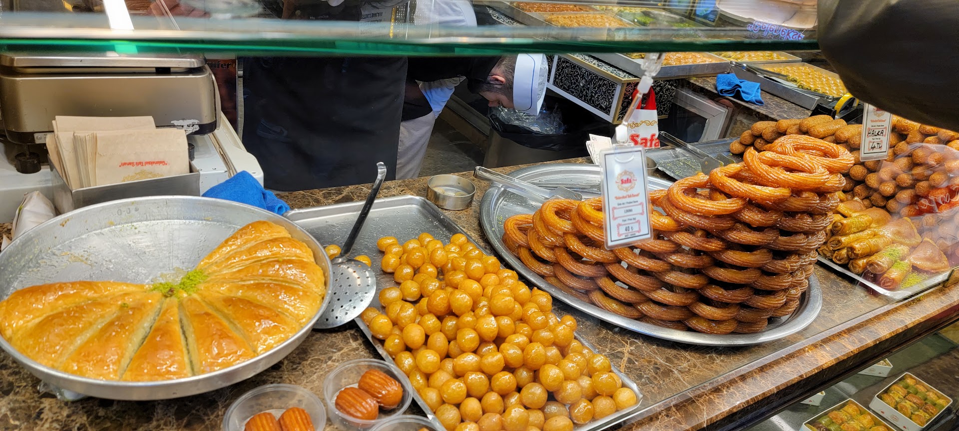 Read moreOne of my favorite spots to get fresh baklava. This is right outside of the spice market. They have a kunefe stand which is great. They also have a second and third floor where you can sit and eat some desserts with Turkish Coffee or Tea. I love bringing their baklava back home to the US, they have a sealing machine to ensure freshness and that the product won't get out of the box. The baklava once sealed will last for 7 days. This place feels very authentic and cozy despite it being right inside the market area; workers are really nice as well. There is a restroom as well on their top floor....