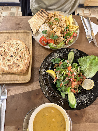 Read moreGiving this a one-star review because there are many positive reviews, and it honestly doesn’t deserve it. Food was mediocre at best. Price was high for the quality. Humus was bought in a store nearby as we were sitting here (and maybe watered-down, since it was so fluid?). Menu card showed a picture of 3 skewers for the ‘lamb skewers’, but there was only 1 on the plate. Was also the worst adena kebab we’ve had all week. Asked for some olive oil for the humus, and he came out with the chef’s “special blend”, which was some oil (didn’t look/smell/taste like olive oil) with some oregano in it. People rate the atmosphere highly, and the deco is nice, but they were blasting the radio the whole time, which had at least as many loud af advertisements as songs. Would not recommend. There are better low-price restaurants off the main road with way better...