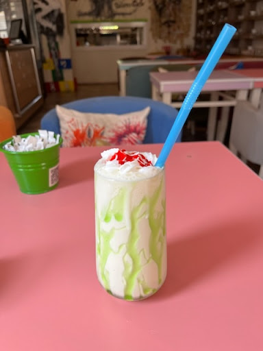 I was wandering trough Istanbul because I wanted to reach the old walls of Constantinople. Next to where the Valens aqueduct passes by, I found this awesome little cafe. It begins in the first floor and I think extends up to the third even. ( I was only going till floor two) it is very tidy and modern and colorful inside. There was first one lady who despite she didn’t speak English, we got along very good with google translator :) I ordered this milkshake you see on the picture and also a frozen cherry drink. And they this milkshake looks you can tell it is made with a lot of love and passion. And it also tastes very good. You can sit in some old but Cosy armchairs or couches, which are all very colorful. At the window you got a nice view onto old houses made of wood, or even on the small part of the aqueduct. Also it is in a More quiter corner of Istanbul which is pretty nice to relax a bit. I can totally recommend you all...