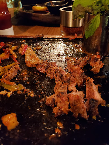 The presentation is extremely outdated and tacky. The steak was served on a sizzling hot metal tray — yes, it looks dramatic, but in reality, the tray is so hot that the steak keeps cooking and ends up overdone and rubbery. It becomes almost impossible to eat. The kebab was very basic — nothing special at all.