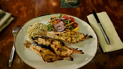 Glad we did! The restaurant is beautifully decorated and classy, and the food far exceeded my expectations. My wife’s garlic prawn and my hummus and falafel starter were very good and the small warm rolls was a nice change from the relentless balloon breads elsewhere.