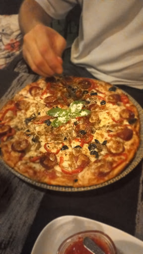 Google mapsten araştırıp bulduk ve sırf oraya gitmek için yürüyüş de olsun diye tek yön 3 km yol yürüdük, çünkü güzel bir atmosfer bulacağımızı ve güzel yemek yiyeceğimizi düşündük. Mekan öncelikle aşırı işlek bir caddenin tam yanında ve aşırı araba sesi alıyor. Ama asıl sıkıntı girişteki menüyü görünce başladı. Türk kafasıyla en boş pizzanın küçük boyu 380 tl den başlıyo ve düzgün çeşit bir pizza ismine bakmak isterseniz 500 tl ye çıkıyor. Dedik neyse bi mekanı görelim, fotolarda gözüktüğü gibi güzel bir atmosfer var mı acaba diye. Bilin bakalım nasıl mekan? Çay bahçesinden hallice masa ve sandalyeler, üzerine tam olarak çay bahçesi menüsü gibi plastikten bir menü. Hadi bunlara da tamam, ama mekanın özensizliğini bir de menüdeki çarpık ingilizceden de teyit edince bu fiyatların yiyeceğimiz şeyle alakası olmayacağını anladık. Ayrıca tabaklardan pizza boylarını da gördüm, hani dedim acaba amerikan tarzı 60-80 cm çaplı pizza mı yapıyorlar, o da yok büyük boy normal standart pizza boyu. O boyun fiyatı da 500lerden başlıyo.