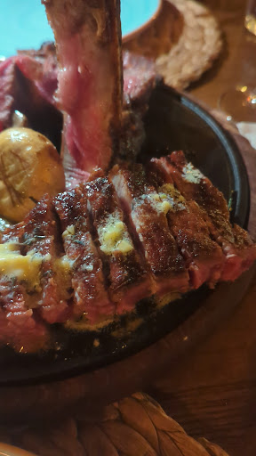 Now, let's discuss the meal itself. If you happen to be staying in Oludeniz or Fethye, I highly recommend paying a visit to this establishment. We had the opportunity to chat with the owner, and it was a heartwarming and passionate conversation about meat and the restaurant. The variety of meat options available was outstanding, with cuts that were properly aged for 40 days. Each cut was thick and flavorful, as it should be. They even allow you to choose your own steak at the meat counter, with guidance from the butcher. Personally, I opted for a bone-in ribeye weighing 900 grams, while my girlfriend selected a 600-gram T-bone. Being a meat lover, I can attest that when it's aged and cooked to perfection, I truly adore it.