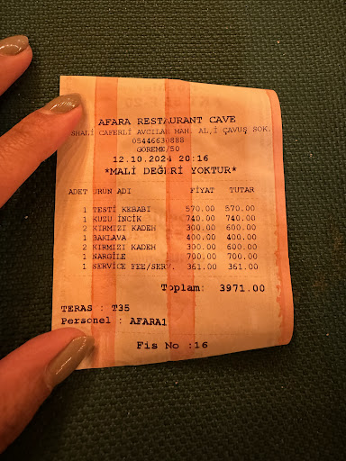 They ran 3 credit cards at our table claiming none of them went through. Our family has been traveling in Turkey up until this point for almost a week and never had any issues with credit cards charges. They told us it was our credit card issue which it can’t possibly be. Then two of their staff admitted that they have been having problems with their machine for the past 2 days. They also do not have a back-up machine. How can a restaurant ONLY HAVE ONE CREDIT CARD MACHINE?! They are purposely not fixing their machine so they can end up taking your cash. They also do not tell you when you enter that their machine isn’t working and that they can only accept cash.