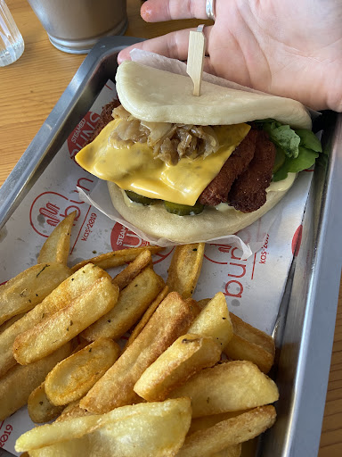 BunBun Kas bietet gute Bao Buns mit interessanten Füllungen, aber bei der Auswahl des Hähnchenfleisches wäre eine mildere, saftigere Option wünschenswert. Wer sich für Rind entscheidet, macht nichts falsch, und die Pommes sind definitiv ein Highlight.