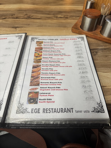 Read moreYıllar yıllar sonra yorum yazmaya karar verdim. Yorum yapmama yemini mi bozduran ege restaurant oldu. Neden mi derseniz arka masada benimle beraber lahmacun bekleyenlerin duygularına tercüman olmam gerekiyordu. Sinirli üç silahşör gibi bakıyorlar kimse birbiriyle konuşmuyor yarım saatten fazla sürede gelecek olan lahmacunun yolunu gözlüyorduk. Bende onlarla beraber garsonu takip ediyor gelecek olan lahmacunlar benim mi diyorum. Şakayla karışık burada ne anlatmak istedim özetleyeyim pide türevi sipariş verirseniz en az yarım saat ve katlarını beklemek zorunda kalabilirsiniz. Garsona birkaç kez sordum hafif sinirliydi geliyor dedi. Dedim geliyorsa tamamdır istediğiniz kadar beklerim. Adam emekçi yazın sıcağında koşturuyor beklerim bende korkularımla :) Hatta adımı sanımı değiştirdim bu yorumdan sonra beni bulabilirlerdi. Nick im ayı boğan değil ama sarı çizmeli mehmet ağa. Yazdıklarımın hepsi doğru aynı sarı çizmeli mehmet ağa nın çizmeleri gibi. Neyse Pide çeşitleri dışında sulu yemekler…Çorbalar… ızgara çeşitleri… allahım lahmacun nerede kaldı…geldi yuppina… ama benim üç silahşörlerin lahmacunu hala gelmedi depresyone girdiler heralde. Onlar yemeden ben yiyemem ki. Dayanamıyorum ben başlayacağım :)) fiyat performans olarak tavsiye edilebilecek bir mekan. Lezzetler güzel. Bu arada arka masadakilerin lahmacunu geldi nihayet. NOT: Çok beklediğimizi anlayan mekan sahibi kasada k bakmayın dedi. Bu mekanın gerçekten kaliteli olduğunu gösteriyor. O kadar beklememize...