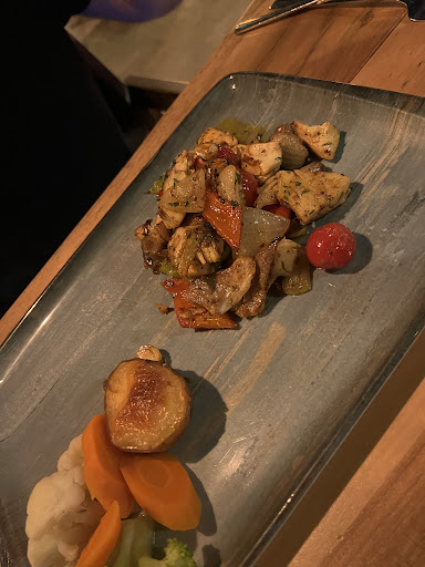 It took a rather lengthy 14 minutes to place our order. I opted for the chicken sish kabob, which featured chicken breast, and while it was okay, it seemed to lack a certain level of seasoning or spice. My partner went for the grilled fish, which was slightly above average, but we both felt that an extra side dish would have improved the overall presentation – his plate looked rather sad with just grilled veggies, as you can see in the photo.