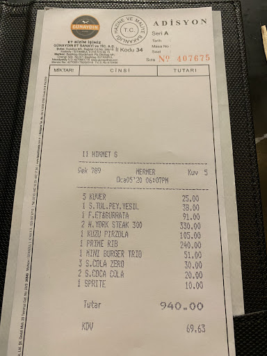 Read moreThis restaurant is one of the best restaurant I have ever visited in Turkey they have a very welcoming staff and very nice atmosphere inside the restaurant. Moreover, the cooking is very high quality. We ordered a wagyu steak and it was the best also the lamb chops was good Do not miss in the starter the ET& burrata because it’s really very delicious and the price of the restaurant is reasonable not too high and not too low and you can see the invoice I put the...