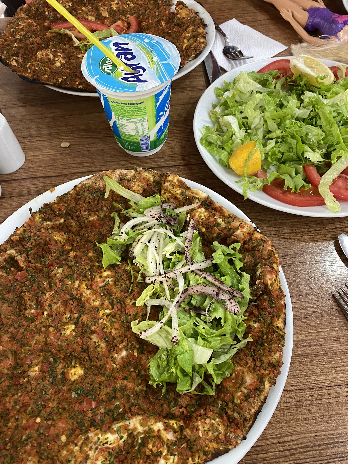 İçerisi gayet yoğundu, garsonlar gerçekten ateş gibi, iki kişi inanılmaz çalışıyordu. Bana hitap eden cinsten bir işletme. Lahmacunlar bittikçe sıcak sıcak servis ediliyor. Bu çok önemli.