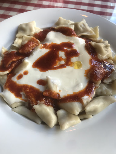 Manti here is the best I’ve had at restaurants in Kadikoy and made on premise. Served the traditional way, with yogurt and fresh garlic (though they will ask you if you want with or without garlic), and a tomato paste based sauce similar to marinara. The three toppings normally added are sumac, a burgundy red spice with a slightly sour flavor, dried mint, and dried red pepper which some people choose not too add. By the way, red pepper in Turkey tends to be more flavorful and spicy then what is served with pizza and pasta at Italian restaurants in the United States.