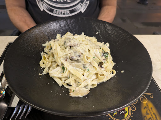 I came here last night and was slightly apprehensive when I saw it was a place that was playing English football on the tv but the food was delish. We haven’t had the best pasta here in Turkey so we read the reviews here and decided to give it a go and was not disappointed. We started with a Greek salad and garlic shrimp which was lovely and then had spag Bol and penne arabiatta, both of which were great. It was very reasonably priced as well - spag Bol 38 lira, penne arabiatta 32 lira, Greek salad 20 lira, shrimps were about 35 lira. Good portion...