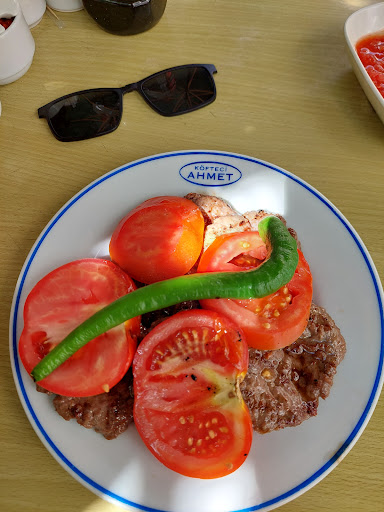 Ahmet ustanın iki adet mekanı mevcutmuş, biz merkezde olan ilk mekanına gittik. Eski bir mekan. Ufak restorelerden geçmiş. Başta tanımamış olsakta ocağın başında köfteleri pişiren Ahmet ustanın kendisiymiş. Güler yüzlü ve samimi. İç Anadolu insanının bürün@ yansımaları mevcut kendisinde. Doğrusu enfes köfteler pişiriyor. Tam kıvamında ne sert ne kuru. İçinde sanırım kuyruk yağı var bu yüzden çok lezzetli. Bir porsiyon köfte bir kişiyi rahatlıkla doyuruyor. Fiyatı 23 TL (31.01.2020) yani gayet uygun. Yanında da bakraçta açık ayran ikramları ve garnitür fiyata dahil. Kilo ile pişmemiş köfte de satıyorlar onunda kilosu 45 TL. Lakabına aldanmayın sakın mekan gayet temiz :) çalışanlar güler yüzlü ve samimi. Sivasa yolu dişünler mutlaka bu lezzeti yerinde tatsınlar. Yorumun daha çok kişiye yardımcı olmasını isterseniz beğen butonuna...