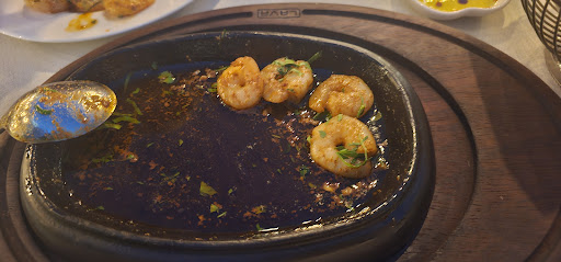 Read moreThe sea bass fish that my boyfriend ordered was great, perfectly grilled and the sides were delicious. The appetizers were tasty, we had liver and meat wrapped in pastry. I got the stuffed bon fillet and it was served cold. A very thin layer of meat stuffed with cheese and mushrooms and it was tasteless. The live band that they had was very loud. We made a reservation to sit outside but we were 10 minutes late and when we arrived they didn't have a table outside. They moved us outside when a table got emptied but they didn't bring our napkins or bread that we had on the...