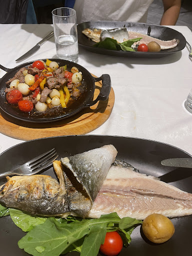 Only good thing about this place is that my fish fillet was perfectly grilled. Other than that, this place is a total tourist trap. Everything else we tried was mediocre. They offer no menus, and when I insisted, they brought one without any prices next to each platter! Waiter insisted that we ordered standing in front of window refrigerators where appetizers were standing without any description (or price, of course), and without anyone being able to explain in basic English (just a few english words here and there). Very expensive for Turkish standards, even for a fish restaurant. I noticed a Completely different approach when it came to local (turkish) customers, which makes me believe pricing was different too.