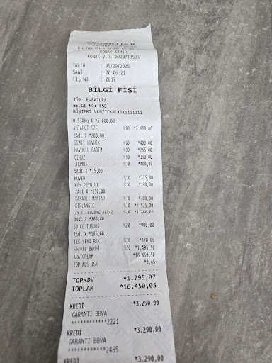 We were looking for a place to eat in Izmir, the owner offered us a table and we went to choose some mezzes, the kitchen suppose to be closed, after choosing the mezzes, they offer us a fish cacerole, we told him that probably will be too much food, he says to us that it was only a plate. So we say ok. When they brought us the food, they brought five mezzes of octopus what we didn't order and we realise we have too much food on the table, we told them if we could not have the fish cacerol and they told us it was too late, so we have to have it, this wast just a plate like they said. It was a big one. At the end of the dinner we have left so much food and we have a very big bill. The cacerole was 7525 liras, the octopus 2650 liras plus everything else what there is not complains about it. The only good thing I can say is that the food was very nice and tasty. A good waitress always should say what to order to the customer and...