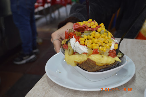 Read moreFena bir yer değil. Kumpir sormak için aradım. Tlfna cvp veren arkadaş çok düzgün konuşamadı. Yerlerine gidip salata büfesine baktığımda ise maalesef ürünlerin birçoğu pörsümüştü ve hijyenik bulamadım genel olarak da. Bu sebeple orayı tercih edemedim. Oturma alanları da çok rahatsız, daraş. Evet belki ellerinde olan birşey değil ama daha çaba sarfedilebilirdi...