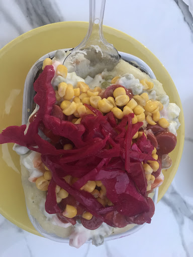 Read moreKumpir söyledik ilk kez bu işletmeden eski patates ile yeniyi karıştırmışlar yollamışlar. Sert sert renkler farklı koyulaşmış eski olan kısmı ve yarısı yok.. Kısaca bir kumpir hazırlanmış eskiyi de içine karıştırmışlar tek kaşık aldık manzarayla karşılaştık.. Asla tavsiyede bulunmam isteyene ulaşsın fotoğraf...