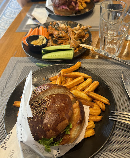 The food taste good , fresh , great seasoning, the portions for the Fit burger is pretty good big portion no need to add anything extra to it . Rib plate taste good , fresh meat ,the portion is a bit bellow the average at my taste , i think if they add options for extra portions would great , the price was very correct tho (110 or so ) The sea bass salad just perfect , good seasoning, big portions . The chicken plate was also very good .