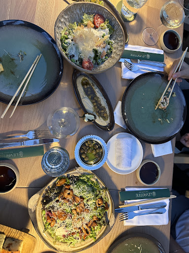 From the moment I stepped in, I was greeted with warm hospitality and a captivating ambiance that set the stage for an unforgettable dining experience. The culinary journey began with a tantalizing array of mezze, each bursting with authentic Levantine flavors that left my taste buds craving for more. The sushi selection was a delightful surprise, showcasing the chef's impeccable skill in fusing traditional Levantine ingredients with contemporary flair. The succulent meats were cooked to perfection, while the spaghetti dish boasted a symphony of flavors that delighted the senses. And let's not forget the vine, which perfectly complemented every dish with its exquisite taste.
