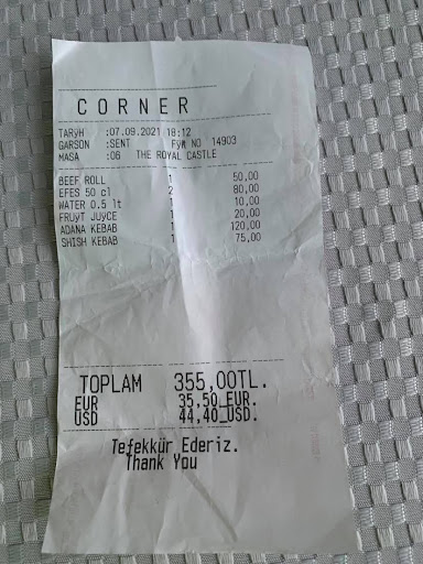 ps. oczywiście na paragonie nie znalazły się dania z innej restauracji. Adana Kebab to krewetki, Shish Kebab to Pizza.