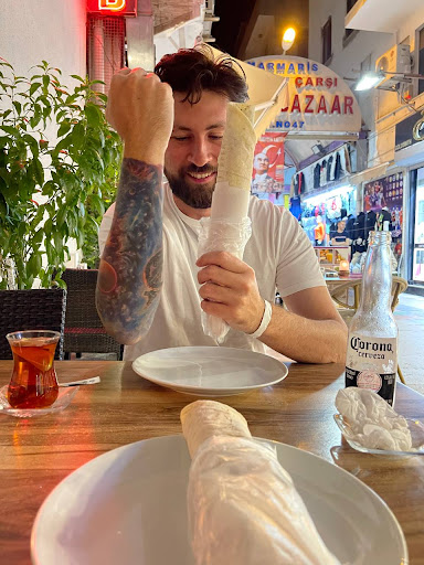 Read moreWe visited Marmaris in April and came across this amazing place when leaving the bazaar. Both my daughter and I had Chicken kebab wraps and my granddaughter had a burger. The food was absolutely amazing, best chips ever and the lovely owner even gave us some Yorkshire teabags when we told him we’d run out and couldn’t find any in their shops 🤭 We will definitely return to this Cafe next time we’re in Marmaris. Not only to pay back the teabags but to have...