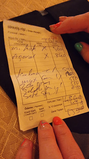 Then came the bill, 5200 Turkish lira (£99) once they added a charge for sitting upstairs, which we weren't told about when being offered a table (10% of full bill to sit upstairs)