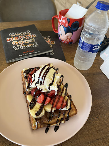 Read moreWaffles really seem to be a thing in Marmaris so we stopped here one morning for a bit of brunch. And we’re glad we did! The list of different combos for the waffle toppings is pretty extensive but we went for one plate with strawberries and chocolate (with chocolate ice cream) and another with bananas, pistachios and honey (with vanilla ice cream). Both were fab. Toppings are generous and the waffles nice and crisp (until they get soaked with melted ice cream, of course… We tried another couple of waffle places in the few days after we’d been to Wafflaki but they weren’t anywhere...