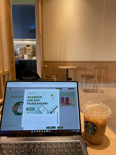 Read moreÇok kalabalık olmasını göz önünde bulundurmazsak vakit geçirmek için güzel bir konuma sahip. Ben sipariş verirken buz yok soğuk içecek veremiyoruz dediler. Kasadaki çalışan, çok ukelaydi. Soğuk içecek olmadığı için sıranın bomboş olmasına rağmen, çalışanlar 3 kahveyi 15 dakikada hazirladi. Kendi aralarında gülüp sakalastiklarini hesaba katarsak iyi bir süre diyebilirim. Genel olarak deneyimim kötüydü. Starbucks abi yaaaa başka yerde kahve içemiyorum çok havalıyım gibi takintilariniz yoksa tavsiye etmem. En azindan...