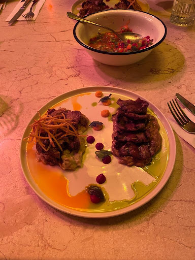 Kahvaltı methini duymuştum ancak ben öğle yemeği menüsünü denemk istedim. İlk ziyaretim öğle saatiydi sanırım bu restoranınm poüler saatleri kahvaltı ve akşam yemeği, öğlen 3 gibi ziyaret ettiğimde çok tercih edilmeyen bir restoran izlenimi aldım, içeride garsonların hummalı telaşı var akşam servisine hazırlıklar var, bu koşturma içinde WC unutulmuş, WC'de temizlik yapılmamıştı ve kağıt havlu yoktu. Mekan oldukça geniş ve çok şık dekore edilmiş, garsonların giyimi ve nezaketi yerli yerinde ve menüye hakimdi. Tavsiye almak istedim önerdiklerinden sipariş ettim. Sıcak başlangıç olarak dana etli pekmezli çıtır lavaş ana yemek olarak kuzu incik arpa şehriyeli. Tatlı olarak çikolatalı cennet çamuru.