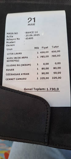 Dekor ve oturma düzeni keyifli olsa da hafif müzik aradım. Adı çıtır lavaş olsa da pide hamuru kalınlığında servis edildi ki çok memnun oldum, garson ısrarı olmasa bu ürünü sipariş vermezdim. Çıtır lavaş denildiğinde krispi üzerinde tiftik et gibi algıladım, öyle değilmiş. Pekmezi et ile çok yakıştırım özelilkle kuzu etine , bu denemem dana eti ile oldu. Çok lezzetliydi. Porsiyon başlangıç porsiyonu kadar , bir pide boyutu beklemeyin. Kuzu incik ise maalesef beklediğim lezzette değildi, yarım saat daha fırınlanması gerekirdi ama şefin tercihi daha diri incikten yana. İnciğin sunumu ise gerçekten çok kötü, o güzel nimeti kayık tabak ile servis niye edersiniz yahu? Zarif, beyaz porselen tabağı duruken... Yerken oldukça zorlandım ayrıca inciğin kemiğini koymak için ayrı bir tabakta masada olmalı, kemik içinde küçük boy kayık tabak içinde zor yemek yeniyor . İnciği çok beğenmesemde sadece o arpa şehriye için tekrar gelirim bu restorana. O nasıl bir lezzetti, et suyunun çektirilmesi, baharatlanması, demlenmesi her şeyiyle dört dörtlük. Cennet çamurunu ismini sevmesemde kendisini çok severim ama son günlerin içi boş popüler tatlısı olan Dubai çikolatasına benzetmeseydiniz keşke. Asil olan klasik olandır, çikolata sade güzeldir, kadayıf kensisi zaten güzeldir ama iki güzel bir araya gelince herzaman güzel olmaz çoğu zaman birbirlerini köreltirler, hayat gibi evlilikler gibi. Ne gerek var bu karmaşaya? Dubai çikolatasını sırf bu yüzden hiç para vermedim. Cennet çamurunun adının değiştirilmesi ve üzerine çikolata yada sizin yaptığınız gibi çikolata sosu ile servis etmeyin lütfen,