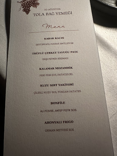 Read moreYusta bağ evindeki Tola bağ yemeklerini deneyimledik. Eşimin doğum günü için bu organizasyonu ayarlamıştım, fotoğraflarda her şey çok güzel gözüküyordu ancak organizasyon çok aksadı. Programda 7de başlıyor yazıyordu 7de oradaydık ancak açılış kokteyli sundukları yerde tam 30 dakika bir masanın gelmesini bekledik. Herkes gelmeden bağ yemeği masalarına geçilmiyordu… ikram ettikleri şeftalili kokteyl çok güzeldi ama bu yeterli bi özür değildi. Yemek alanına geçince saat artık 19.40 olmuş ve güneş neredeyse batmıştı, gün batımını izlemeye gelen onca insan için bu da çok kötü bi zamanlamaydı. Menüde 6 çeşit course vardı, ilkinin gelmesi de neredeyse bi 40 dakika sürdü ki tahmine edeceğiniz üzere ilk 3 course zeytinyağlı soğuklardı. İlk et yemeğini saat 22.45te yiyebildik. Tam 4 saat bi kadeh şarap bi dilim ekmek ve 3 zeytinyağlı ile oyalandığınızı hayal edin.. gerçekten çok üzücü. Beyaz şaraplarını beğenmedim, kırmızı şarap güzeldi ancak devam etmek ve satın almak istediğimizde bitti , restorandan alabilirsiniz dendi. Tattığım şarabı devam ettirmeyeceksem bu deneyimin bağda olması neden ? Yaklaşık 50 kişilik bir organizasyon sanırım yarı kişi ile yapılmalı ki insanlar bu kadar beklemesin ve mutsuz olmasın ve aç kalmasın. Şefin ve ekibinin yaptığı yemekleri genel olarak beğendik ama organizasyonu yetersiz bulduk. Ben alerjim olduğunu bir ay öncesinden söylemiştim menüdeki Çerkez tavuğu ve kalamar yerine bana barbunya getirildi? Sizce etin eşdeğeri bir zeytinyağlı olabilir mi? Hem paramın hem de menünün hakkı değildi. Bu yaklaşım da özensizdi. Gelip deneyimledik ama Bir daha gelmeyiz. Siz de umarım kendinizi...