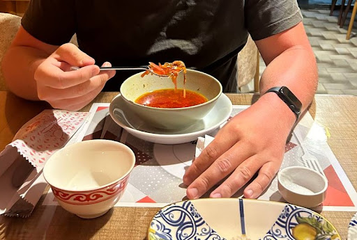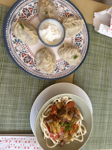 We got lagman for me and borscht for my companion, as well as some mantı and samsa to share. Food was made with fresh ingredients and everything tasted great!