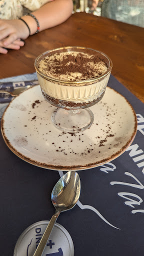 Lush beautiful views of the sea! We went to this restaurant for lunch on a sunny evening and loved the shaded seating and wonderful service. The owner is absolutely wonderful! Very engaging and kind. We ordered the mixed plate of appetisers , it was delicious and very generous. The hummus was the best of the lot! For mains we ordered the spaghetti creamy with shrimp, it lacked a bit of flavour but was very well cooked and fresh. The grilled salmon on the other hand was overcooked and quite small, and took quite a while to come. They have few vegetarian options as well, we we tried the vegetable casserole which was doused in cheese !! It’s quite heavy but a Turkish classic and worth a try. The Chicken Fajitas light and simple to eat, served with a generous portion of fries which were warm and crisp We ended the meal with some espresso and tiramisu, which was also very decadent. The prices are average for the area and decent. Would come here again!
