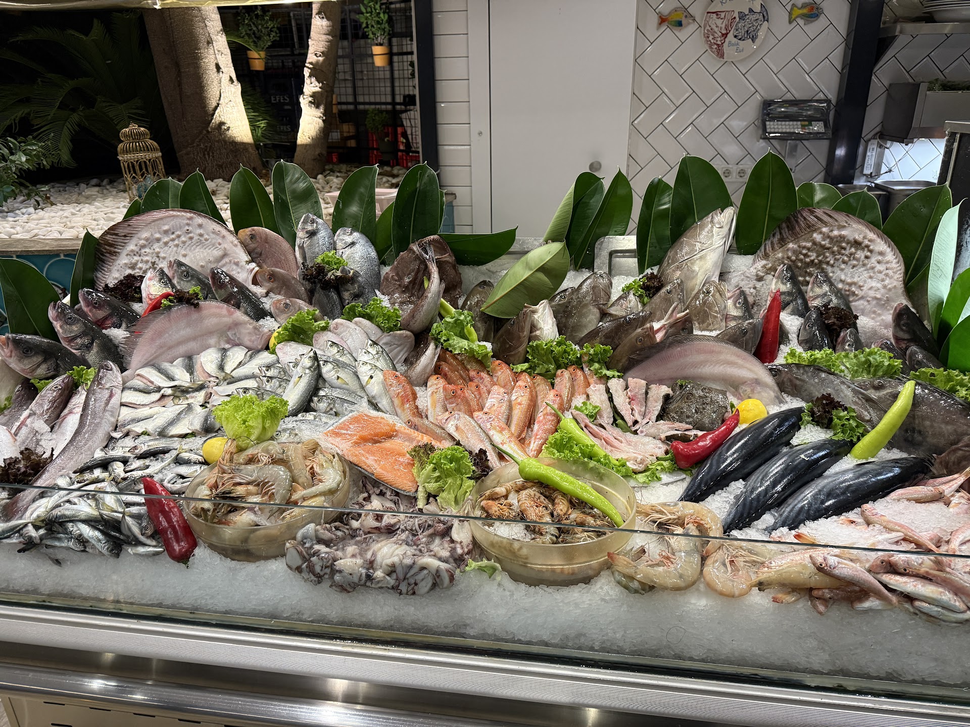 Read moreWe went there twice for dinner. The food was good but expected to be expensive if you didn’t order from the menu. There was no price sign for the fish. However we prepared to pay more. They take advantage of you from the price and weight of the fish if you are not locals. We ordered from the fish refrigerator. The jumbo prawns were good. I ordered the steamed fish twice, first night was white grouper and the second night was sea bass. If you don’t like dried grilled fish, it’s the way to go. The stuff crab shells were good and not expensive. Overall the food and services were fine. It is a popular place patronized by locals. The time came to pay your bill, the waiter reminded me that tips was included. I told him 10% and it went well. The second night, a different waiter told me the same thing. Without waiting for me, he punched in a 20% tips. It went through so quickly. I didn’t want to give him a hard time on a busy Friday night. I learned my lesson. Next time you visit this place, write the tips amount on a piece of paper to make sure there’s no misunderstanding. Btw, the bill is in Turkish. Or tell him that you’ll leave the tips in cash. I’ll recommend this restaurant but expect...