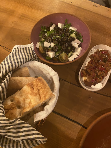 I’m celiac and follow a gluten-free diet and our server was very helpful pointing out the different options for me. Our meal tasted like good home cooking. We split a Greek salad which was garden fresh. I ordered the testi kebap, the Cappadocian specialty where stew is baked in a pottery vessel. The presentation was artful and the stew was rich and flavourful. My husband enjoyed the mezze served with a basket of hot bread. For his main, my husband ordered a burger was impressed by the generous size. We also ordered a roasted vegetable and yogurt mezze to share which was a great accompaniment to the rest of our meal.