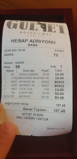 31 Ağustos 2025 akşamı eşim ve oğlum ile keyifli bir akşam yemeği için Gül Et -23 Nisan şubesine geçtik siparişleri verdik iki porsiyon kuzu şiş ile bir porsiyon kuzu külbastı istedik önce gelen 2 porsiyon kuzu şişler tek tabakta servis edildi uyarımızdan sonra eşime ayrı bir servis açtılar benim istediğim külbastıyı getirdiler ancak ben kuzu külbastı istemiştim onlar bana tavuk külbastı getirdiler itiraz ettik tavuk külbastıyı götürdüler aradan çok zaman geçtikten sonra kuzu külbastı diye çok sert çiğnemekte zorlandığım ve bir türlü çiğneyip yiyemediğim hayatımda gördüğüm en kötü etten pişirilmiş bu ürünü servis ettiler hesabı istedik ödemesini yaptık bahşişi ödedikten sonra gelen hesabı incelediğimizde birde ne görelim yanlışlıkla getirdikleri tavuk külbastının ücretini de bize fatura etmişler şef ve müdürü masaya çağırdık durumu anlattık ancak verdikleri cevaplar ciddiyetten çok uzaktı yok mutfaktan çıkan ürün müşteriye yanlışlıkla gelmiş olsa bile faturalandırılmak zorundaymış yok getirilen kuzu külbastı marine edilmediği ve dinlendirilmediği için sertmiş gibi….. bu personel şefi,müdür ve diğer personel kalifiye değil ve bu şekilde devam etmeleri halinde birileri bunları değiştirip tedbir almazsa yakında mekan sahibinin ocağına incir ağacı dikerler. Buraya bir daha uğramakmı Allah...