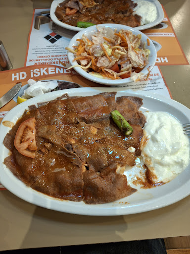 Read moreHer yıl gitgide kalitesini düşürüyor. İlk gittiğimizde etler kalın ve ortada boru şeklinde etler geliyordu. En son gittiğimde hem etler ince hem sos koklatılmış, tereyağı desen tereyağı tadı yok Margarin mi ayçiçek yağı mı anlamadım. Ortadaki biber bile eskiden bütün biber geliyordu fotoğrafta göreceksiniz çeyrek biber koymuşlar. Her şeyden kısmıslar. 1.5 İskender söyledim ama sadece tabağı büyük( yanıltmaca) 1 porsiyon üzerindeki etler aynı. Etler o kadar incelmiş şeffaf bir hal almış. Arkasını gösteriyor çatala takınca. Yani en son gittiğimde iyice tadını bozmuştur. Midesine saygısı olan adam yemez bir daha. Paranızla rezil olmak...