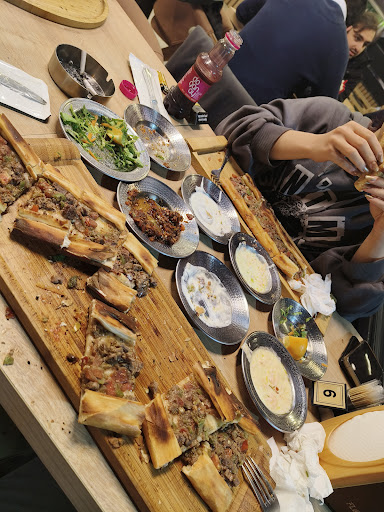Ters köşe bir mekan.Buraya tamamen tesadüf eseri yan tarafta olan meşhur bir kanatçı var diye geldik.Cocuklu aileler bilir gidilecek yeri seçersiniz çocuk arıza yapar hiç birşey yemek istemez illa başka birşey diye tutturur.Tam da başımıza böyle birşey geldi.Cocuklar pizza isteyince ne var ne yok diye etrafa bakinirken görüp bulunduğumuz yerden sipariş bile vermeden buraya geçtik.Once en miniğin isteğini ellerinde olmasada yakın bir esnaftan hallettiler.Sonra bizde çiğ köfte,pizza,pide ve meşhur bir lahmacunlari varmış onu deneyelim dedik.Gelen ürünlerin hepsinin lezzeti muazzamdi.Hele bir kürek lahmacun var ki.... Off denir.Bizim yemeğe mırın kırın eden biciriklar bile lahmacuna daldı.yaklasik 1 metrelik lahmacun hep servis şekli hemde tadı şölen gibiydi.Mekan bize piyangodan çıkan ikramiye gibi geldi.Calisanlar, ürünler,fiyatlar.. hepsi o kadar dengeliydi ki verdiginiz hesaptan sonra bu kadar yemeğe az mı geldi hesabı kontrol ettin mi birşeyi unutmuş olmasınlar diyorsun.Hamurlarinin lezzeti inanılmaz şekilde on numara beş yıldızdı bu yüzden yolu düşen herkesin buraya ugraması şart yoksa...