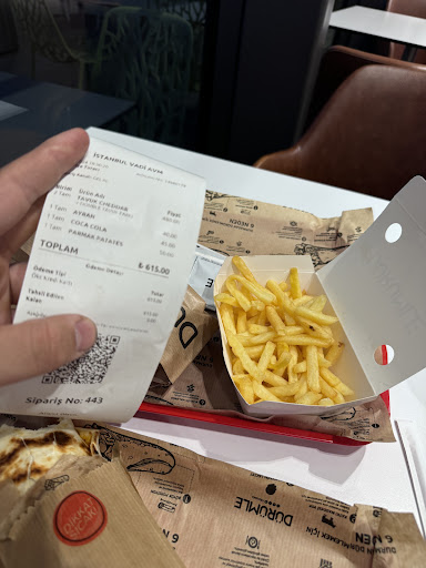 Read moreESKİ VADİ İSTANBUL DÜRÜMLE DEİL HİZMET VB AYNI SEKILDE TAVUK DÜRÜMLE SOYLEDIK 2 tane DUBLE NE TAVUK SICAK NEDE PATATES KIZARTMASI SICAK PATATES KIZARTMASI BEKLEMEKDEN BÜZÜŞMÜŞ VE SOĞUMUŞ AYNI ŞEKİLDE KASAYA GETİRDİM SOĞUK PATATES KIZARTMASI DEĞİŞTİRİRMİSİNİZ ARKA TARAFTAKI ELEMAN BENIM İADE ETTİM KIZARMIS PATATESI YAĞ TENCERİSİNE GERİ ATTI SOZDE ISITTI VERDI BARİ KARSIMDA YAPMA KIZARMIS PATTESİ YAG TENCERİSİNE TEKRAR ATARSAN O PATATES YAĞI OLDUĞU GİBİ CEKER ZORLA CALISIYOR...