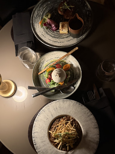 Hizmet kalitesi düşük , fiyat performans açısından pahalı, atmosfer ise bayıcı . Açıkçası ben eşimi doğum günü yemeğine çıkardım küçük bir kutlama olması adına ancak mekana girdiğiniz gibi yüzünüz düşüyor atmosfer çok bayıyor karşılama da kimse yok vale de kimse yok bagiyle değil de araçla çıktık ona rağmen kimse yoktu yani eşim beni kapıya kadar bırakıp sonra aracı park edip geldi, içeriye geçtim boş masalar olmasına rağmen ki önceden rezervasyon yaptırdım istediğim masalara gruplar gelinecek denilip alınmadım bu arada aklınıza belki “mekana uygun görüntün yoktur” fikri gelmiş olabilir ancak hiç merak etmeyin arkadaşlar eşim de ben de bu tarz mekanlara çok alışığız nasıl giyinilir biliyoruz lezzet olarak fena sayılmaz yenilebilir elbette ancak fiyat olarak bu kadar yüksek olup porsiyon olarak çok yetersiz salata bile çok çok azdı ki bir burrata salatasına 1300 küsür gibi rakam ödedim garsondan bir şey istediğimizde ki zaten 4,5 masalık bir yoğunluk var garsonu işaretlerle ve seslenerek çağırmak zorunda kaldık, çalışanlar arasında sadece Solist Maral hanım gülüyordu :) 2 şişe...