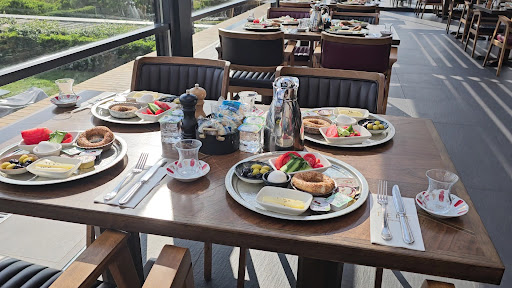 What a beautiful restaurant! Very elegant designs inside, amazing views ( please refer to pictures for the views). We had pre-set breakfast, which was waiting for us on the table, when we arrived (we came in a group on a tour). Breakfast we had was very good despite not having a hot food ( see pictures of our plates). Carafe with very hot tea was on the table as well. Tea tasted soo delicious and refreshing. I would definitely come back to this restaurant when we are in Istanbul. Staff was very friendly, most of them spoke English. Bathroom was very clean. And loved they had an aroma diffuser under paper towels dispencer. When you come to get a paper towel, the diffuser starts making aroma (it's like a aromatic smoke is coming out of it). There is a big area for outdoor sitting on a patio, overlooking bridge and city side across the river. Very-very scenic, picture perfect place. Highly Highly Highly...